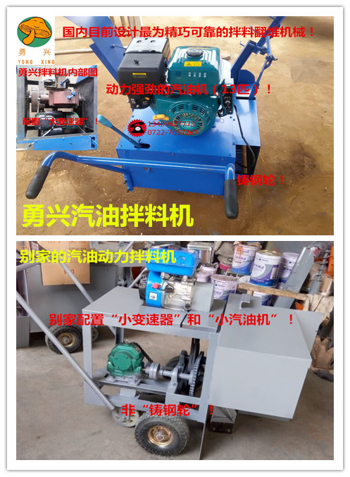 勇興汽油拌料機和別家對比:勇興汽油拌料機(動力13P)PK別家汽油拌料機(動力7.5P)